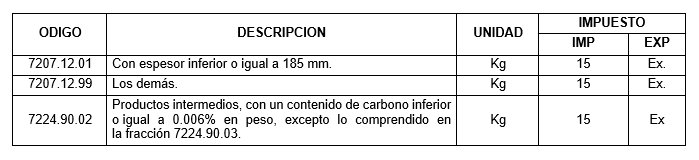MODIFICACIÓN DE ARANCELES A LA TIGIE , DE LAS FRACCIONES ARANCELARIAS QUE SE INDICAN